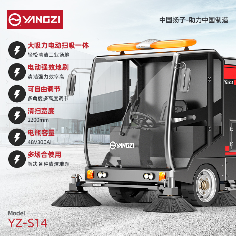 揚子YZ-S14駕駛式掃地機的清掃寬度可以電動調(diào)節(jié),操作更加靈活方便;配備四個強勁邊刷,清掃效率更高。垃圾倉采用防水設計,可以直接進行沖洗,240L大容量垃圾箱,使用過程無需反