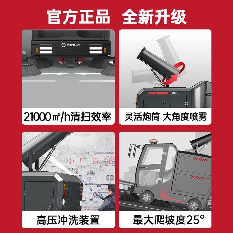 揚(yáng)子YZ-S15駕駛式掃地機(jī)清掃效率可達(dá)15000㎡/h,實(shí)現(xiàn)了掃地+吸塵+霧炮三合一的功能。靈活霧炮設(shè)計(jì),大角度噴霧可以完成水平角度350調(diào)節(jié),使用品牌電機(jī),續(xù)航能力更強(qiáng),爬坡度可以達(dá)
