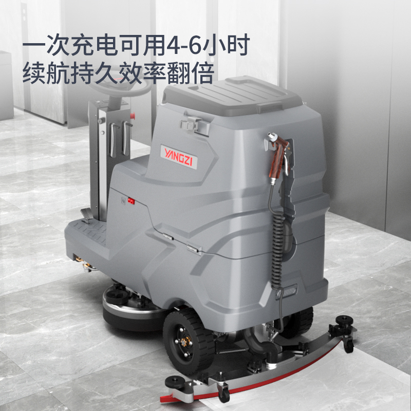 小型高效駕駛式洗地機(jī),選配水槍駐車(chē)系統(tǒng),大動(dòng)力吸風(fēng)電機(jī),大容量清污水箱,品牌電池持久續(xù)航
