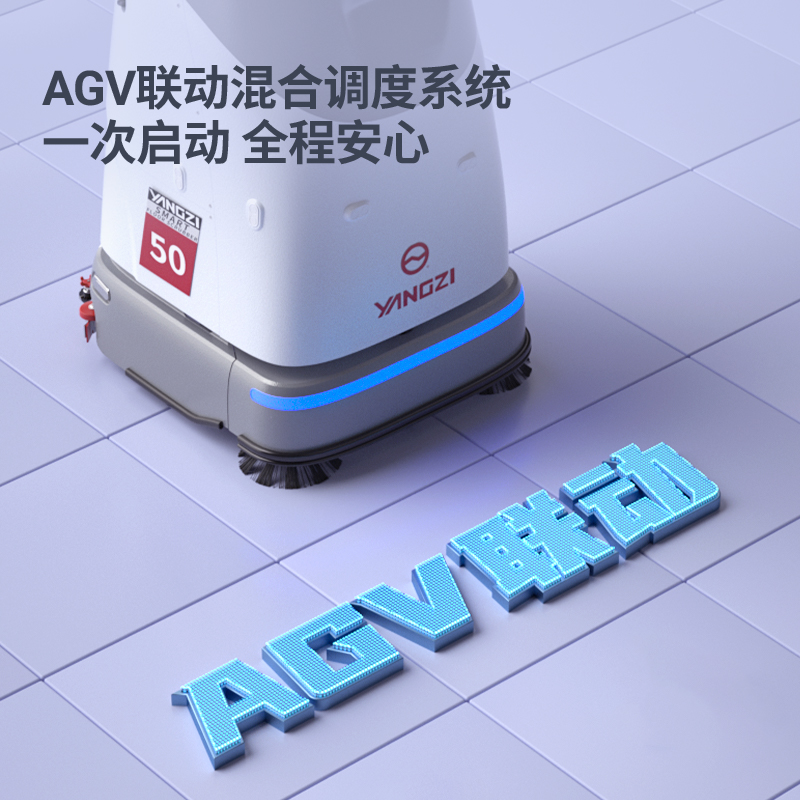 揚子洗地機器人YZ-SC50,AGV聯(lián)動混合調(diào)度系統(tǒng)一次啟動全程安心,支持洗地車與AGV同場運行,互不干擾。