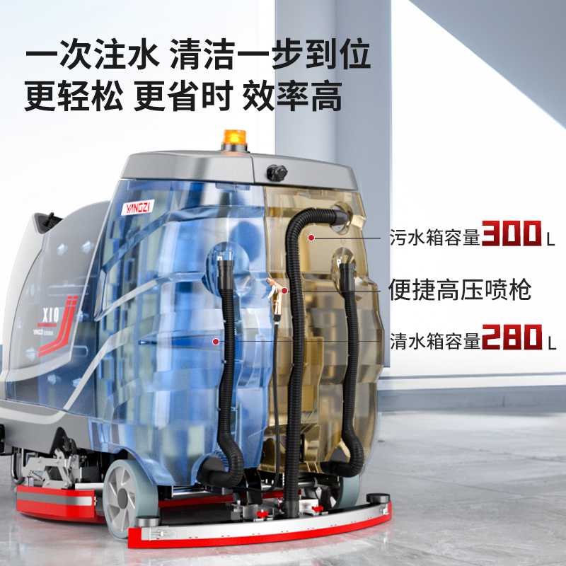 揚(yáng)子洗地機(jī)YZ-X10,“坦克”動(dòng)力污漬克星,洗擦吸三合一,采用新款進(jìn)氣設(shè)計(jì),達(dá)到水汽分離效果,防止出現(xiàn)堵塞。